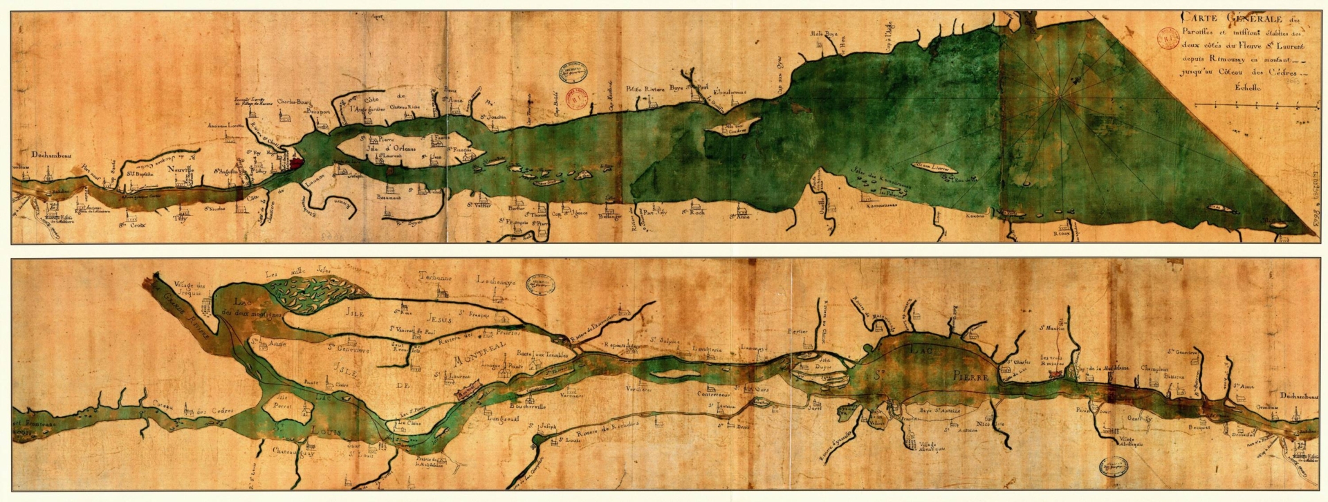 General Map of the Parishes and Colonies Established on Both Sides of the St. Lawrence River from Rimouski up to Côteau des Cèdres. Collection d’Anville, ca. 1740-1749.